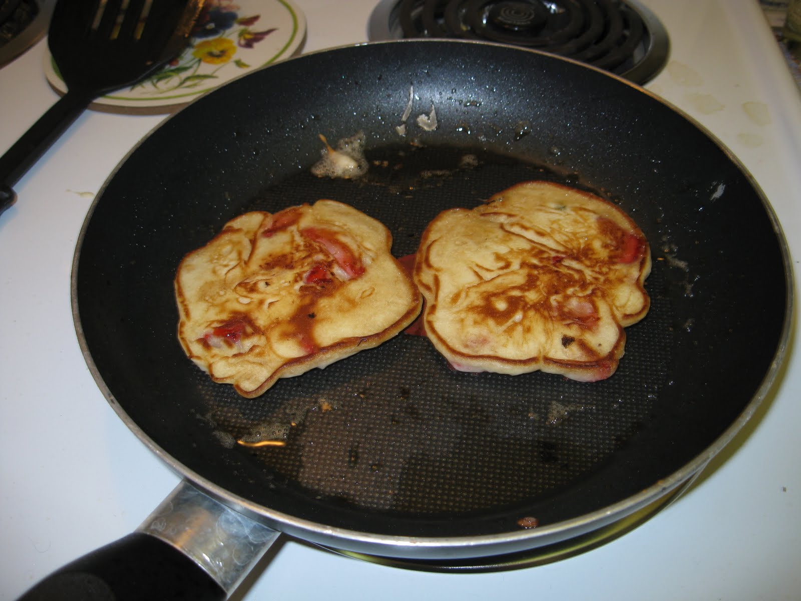 And here we are while we cooked the pancakes:There's some fake enthusiasm for ya!===